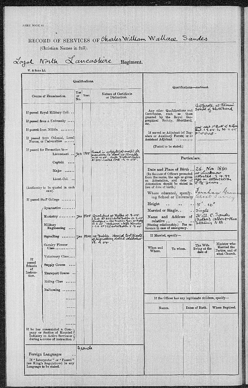 Reference: Regimental record 1775-1914 - Charles WW Sandes