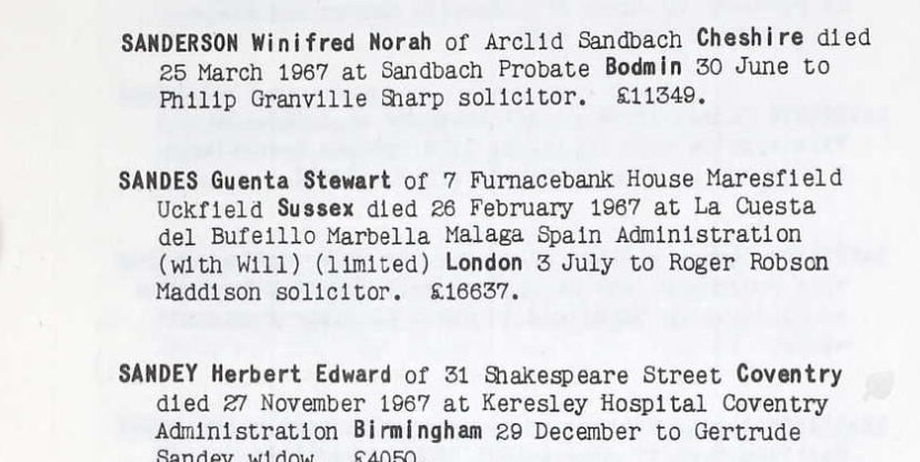 Reference: British wills 1858-1995 - Gwenta S Lockhart