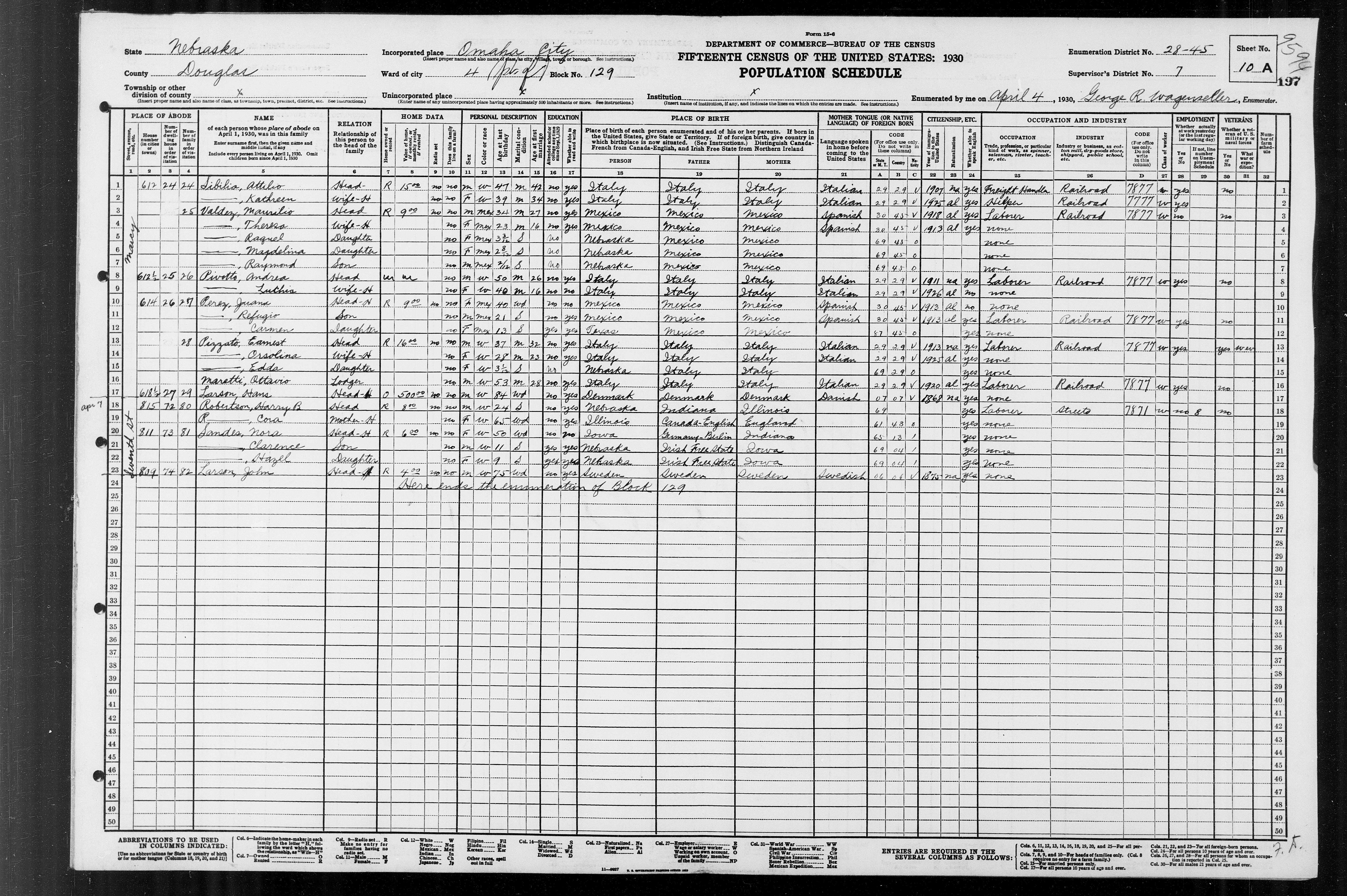 "United States Census, 1930," database with images, FamilySearch (https://familysearch.org/ark:/61903/1:1:XQKH-L8J : accessed 19 September 2020), Nora Sandes, Omaha, Douglas, Nebraska, United States; citing enumeration district (ED) ED 45, sheet 10A, line 20, family 81, NARA microfilm publication T626 (Washington D.C.: National Archives and Records Administration, 2002), roll 1273; FHL microfilm 2,341,008.