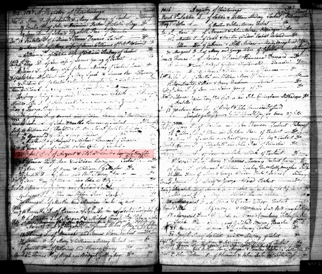 Area - KERRY (COI) , Parish/Church/Congregation - KILNAUGHTIN Baptism of ROBERT SANDES of - on N/R N/R 1813 Name ROBERT SANDES Date of Birth N/R N/R N/R Address - Father THOS WM SANDES Mother MARGARET SANDES