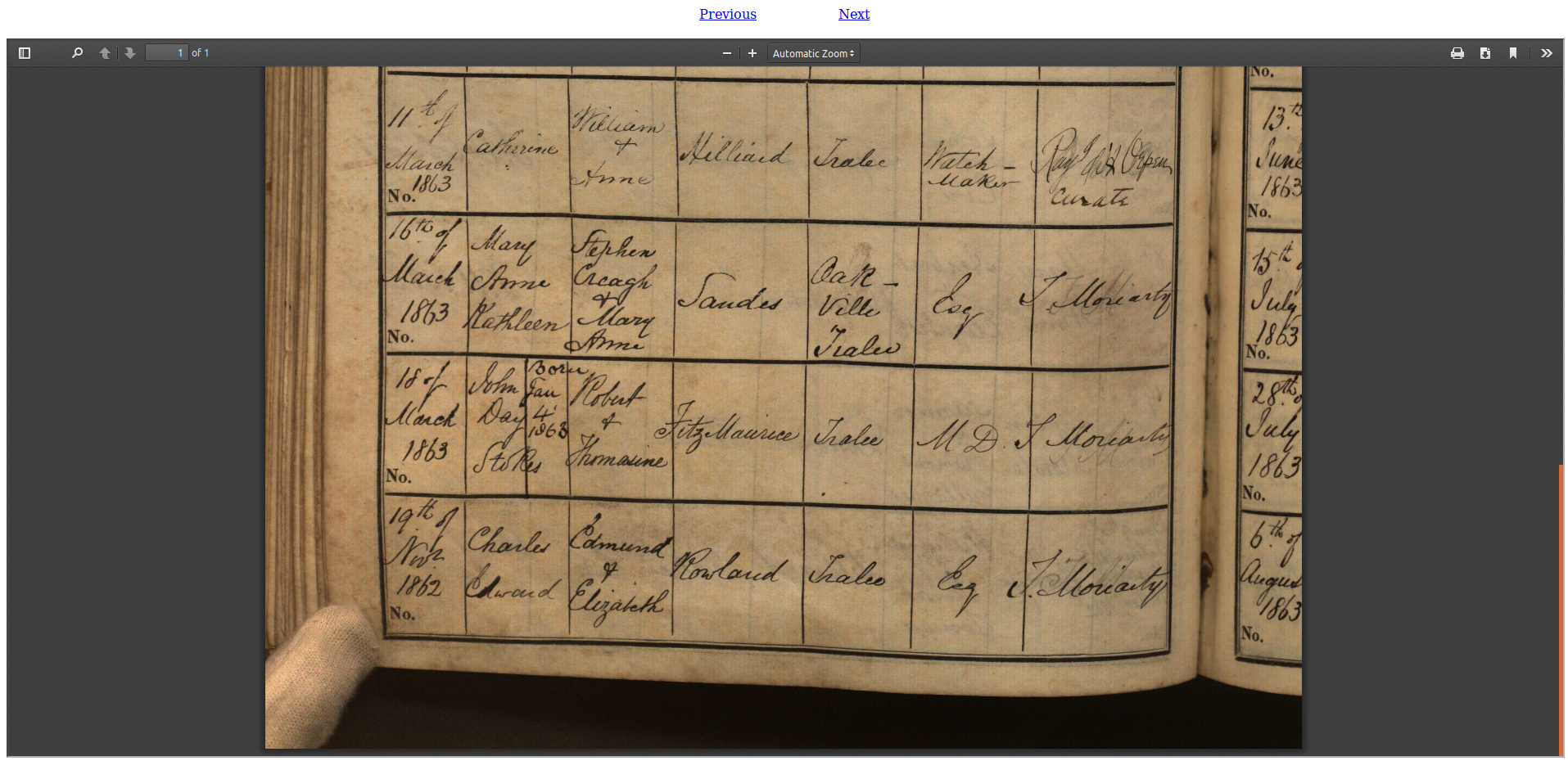 Reference: Irish Church Records - Kathleen M Sandes - baptism